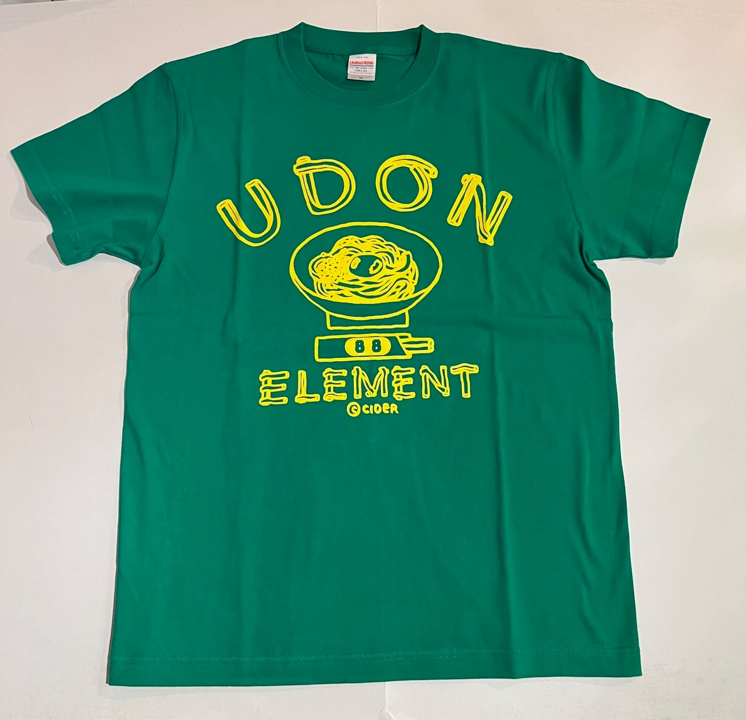 かせきさいだぁ UDON ELEMENT Tシャツ グリーンxイエロープリント