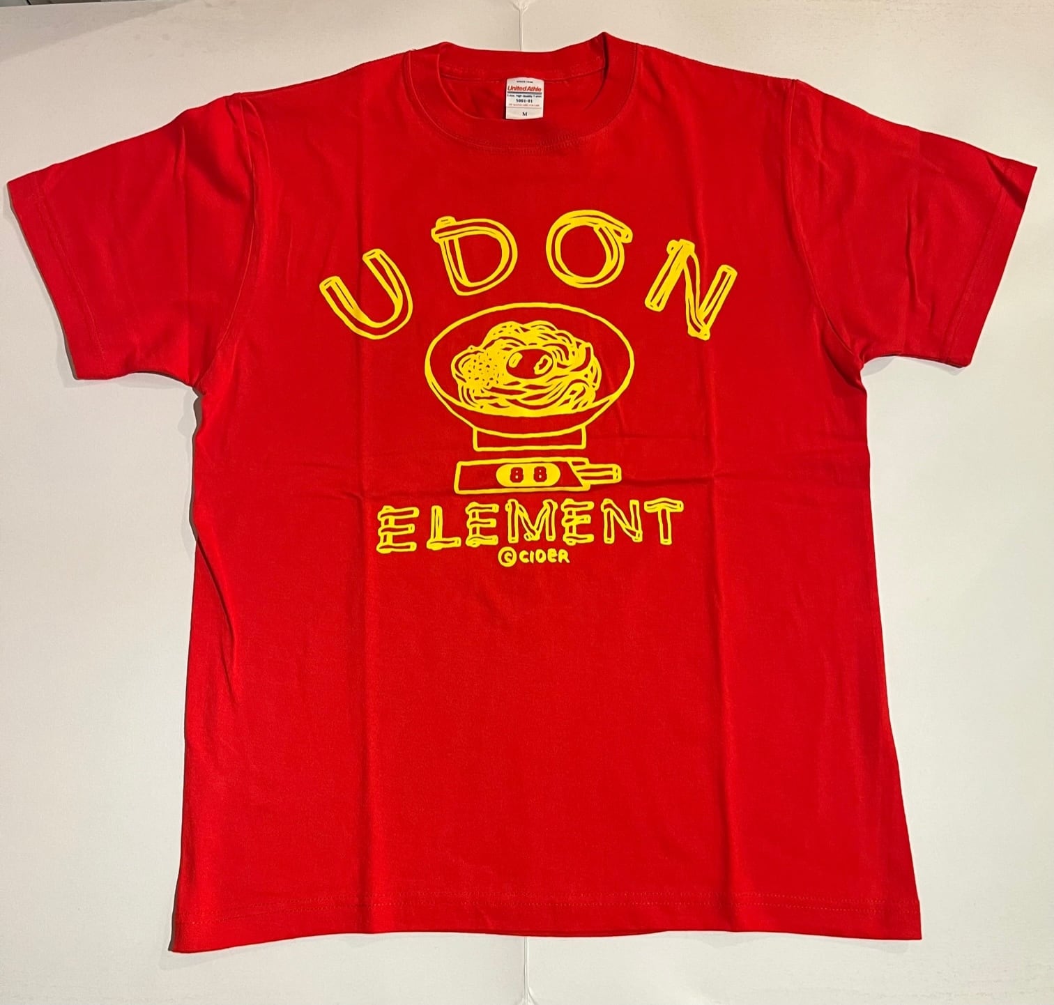 かせきさいだぁ UDON ELEMENT Tシャツ ハイレッドxイエロープリント